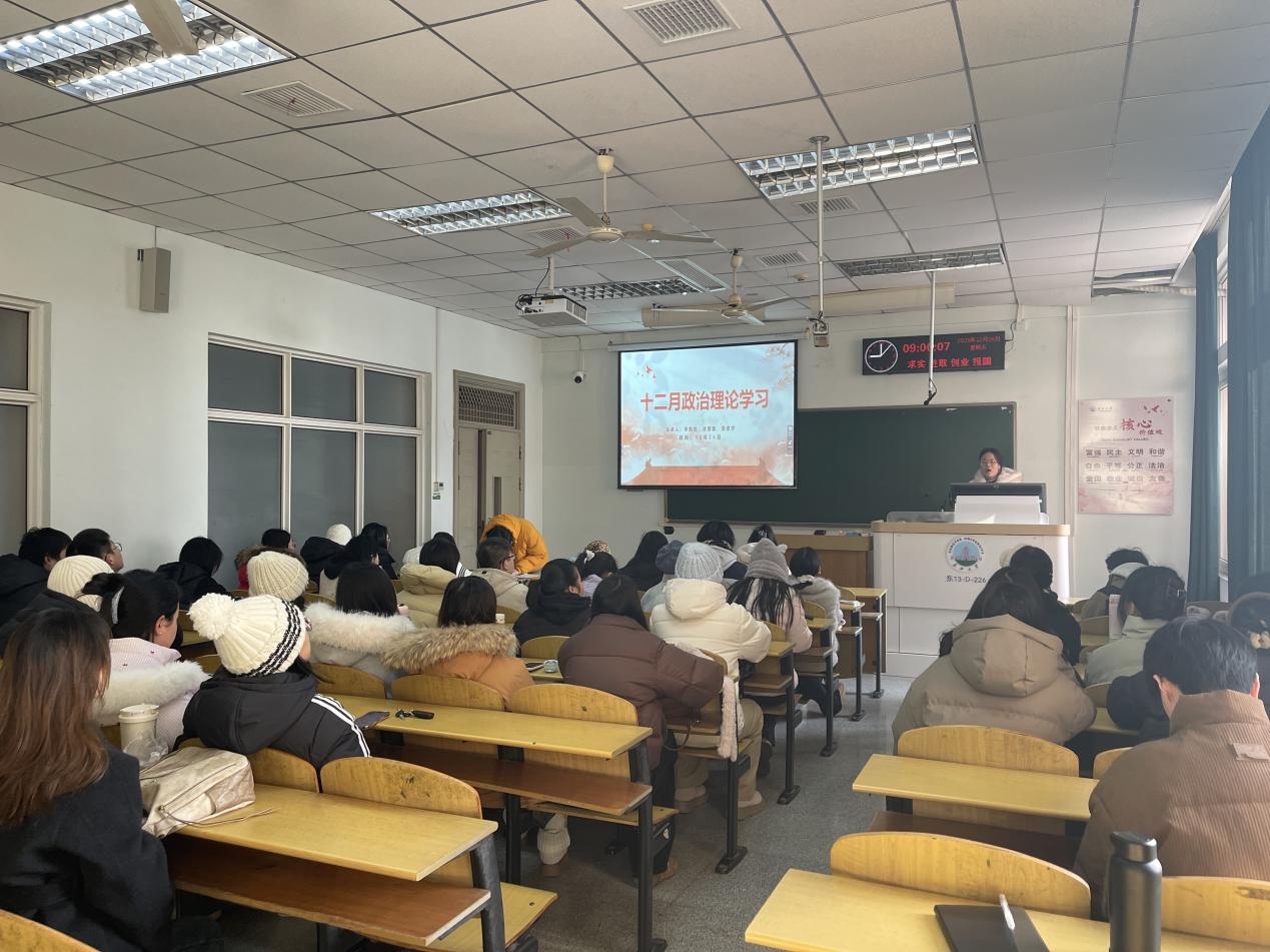 2025级全体研究生在13教D-226教室集中开展十二月政治理论学习活动。