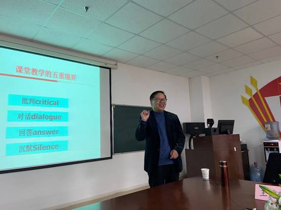 “所谓对分课堂,核心理念是权责对分,通过师生在教学过程中分享权力、共担责任,促进学生的主动学习,培养其核心素养和创新能力,实现全面、健康的个性发展。”王教授充满激情地向师生们介绍教学改革的新理念,强调在新时代,要充分发挥学生的主体作用,一定要让学生参与学习;思政课教学要与信息技术深度融合,要辩证地看到手机的作用,让手机从影响课堂教学的娱乐设备,转变为老师教学和学习学习的利器,要充分利用移动互联技术实现课堂教学的全员互动,实时互动,而不要“顽强”地拒绝新生事物。