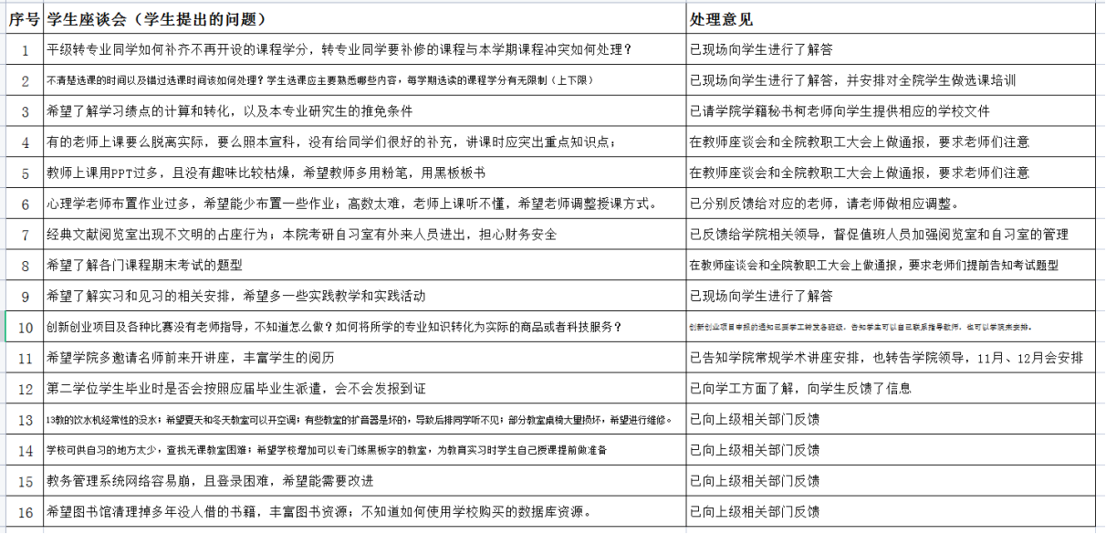 对师生反映的问题和建议进行了分析、反馈,并提出了相应的整改措施。具体情况见后面的附件1和附件2.