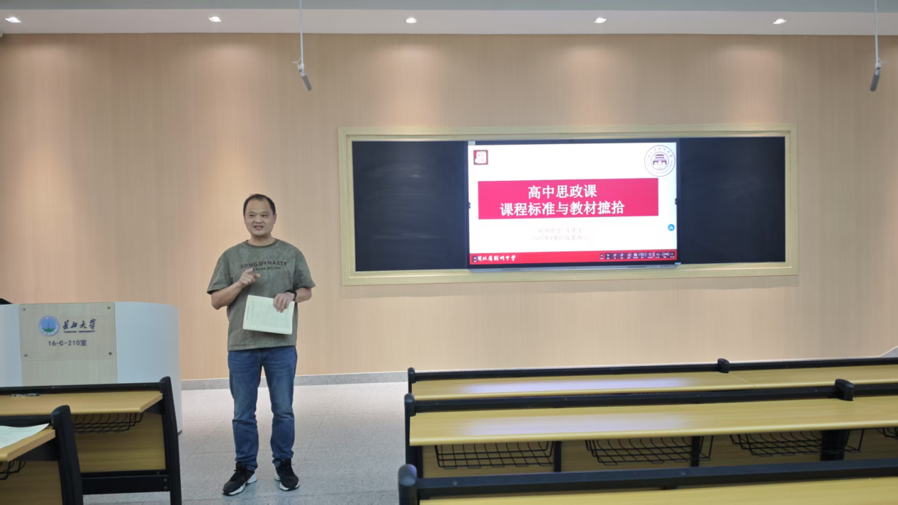 4月12日上午16教C210教室,王老师以“选思政 练内功 看课标”为切入点,从当下塑造立德树人新格局,培养担当民族复兴大任时代新人的时代要求出发,引导同学们与老师积极互动,激发了大家的思考与讨论。随后,王老师从“练内功”的教师要求展开,和同学们分享思政老师的必备要求,从塑造正确三观、储备多样才能、做好人生规划等方面,深入与同学们交流在当下时代要求下高中思政教师的内功要求。王老师还与学生分享自己学生时代的亲身经历,并以此为例,深入交流了时代培养需要、教师涵养内功的思考与启示。在课程标准的交流环节,王老师重点讲解了中学课程标准的内涵、重要性与具体落实方法,引导同学们更好理解与思考中学思政课程标准。